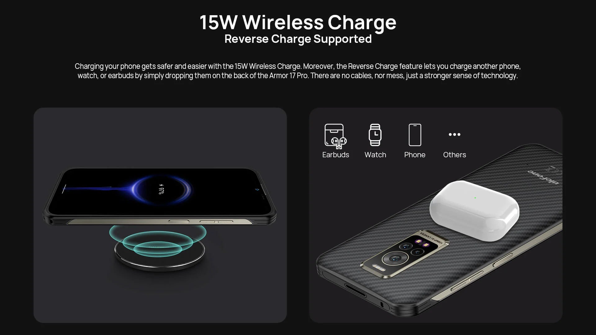 - 15W wireless charging (Qi Standard)