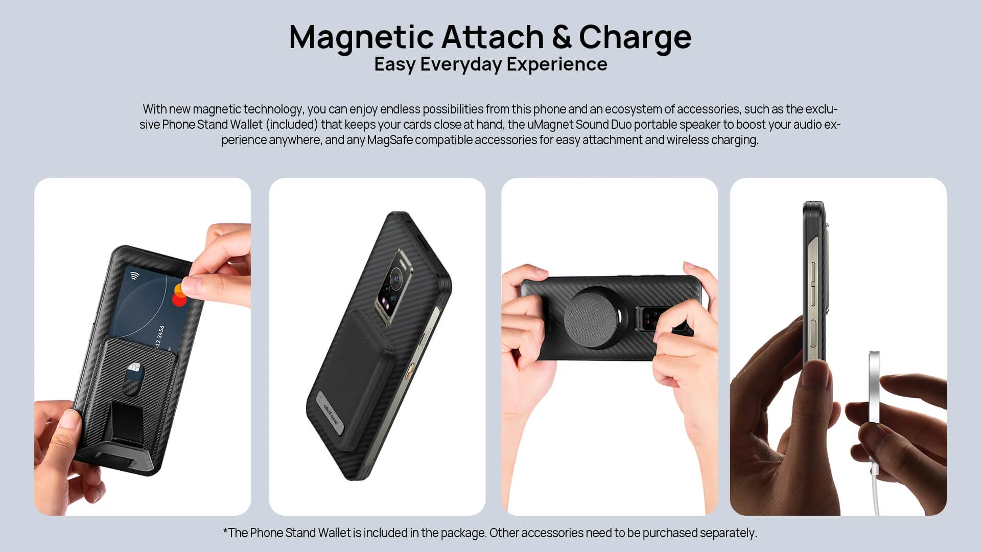 Magnetic Attach & Charge: Supports Phone Stand Wallet (included), uMagnet Sound Duo, and any MagSafe compatible accessories