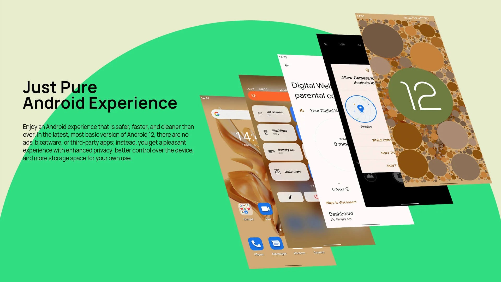 - Android 12: Pure Android System, No ads