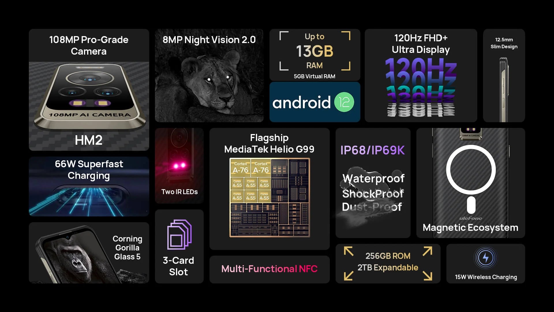 11. Charging time specs are based on data from Ulefone labs. Results may vary depending on testing environment.