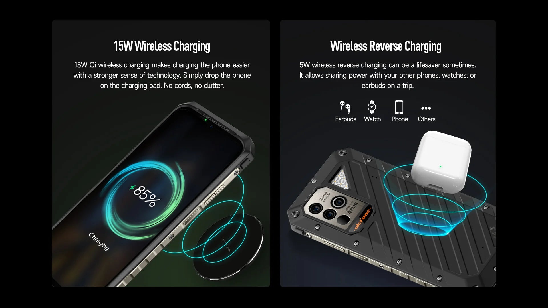3. 15W is the max wireless charging power under the Qi protocol. Data are from Ulefone labs. The actual charging power and charging time may vary depending on the specific conditions, please refer to the actual usage situations.