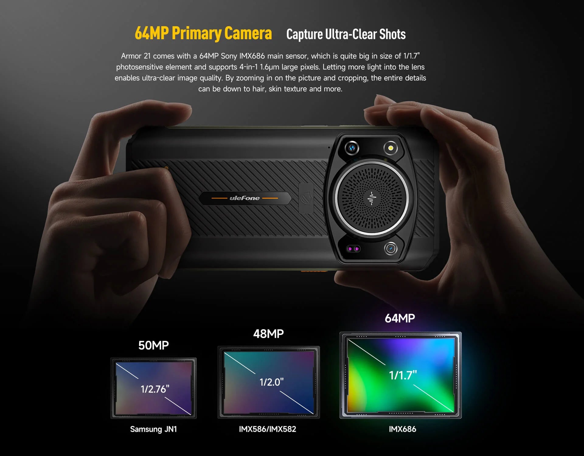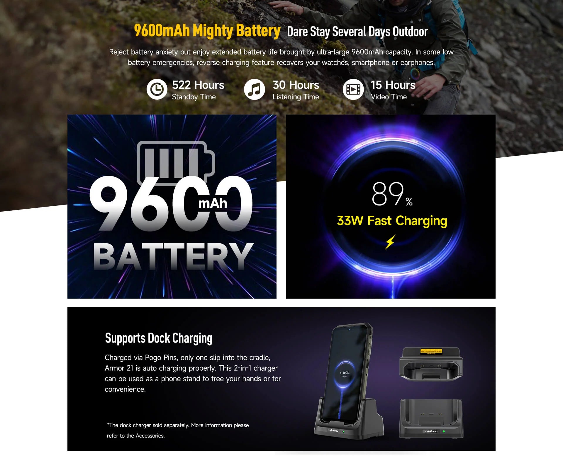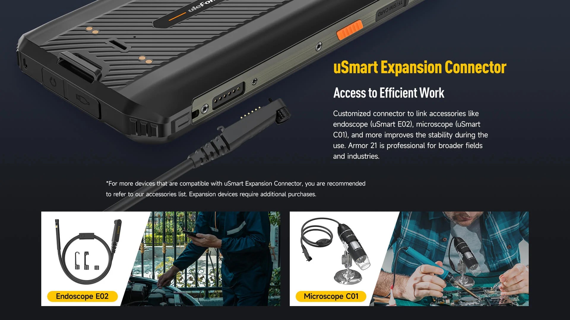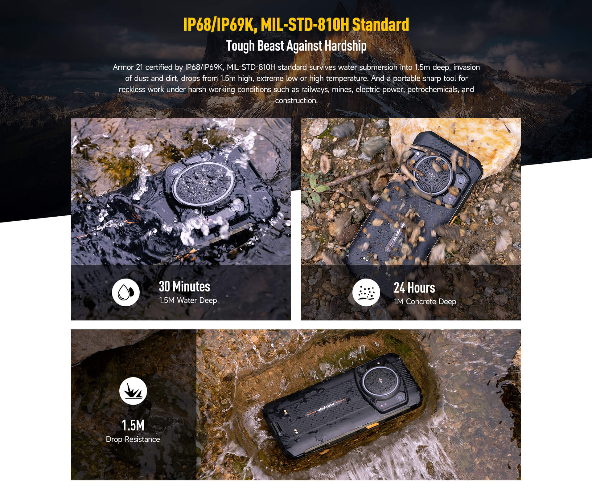 Together with 8GB of RAM + 8GB Virtual RAM, 256GB internal storage and 2TB expanded storage space, Armor 21 runs without latency, enhancing working efficiency.