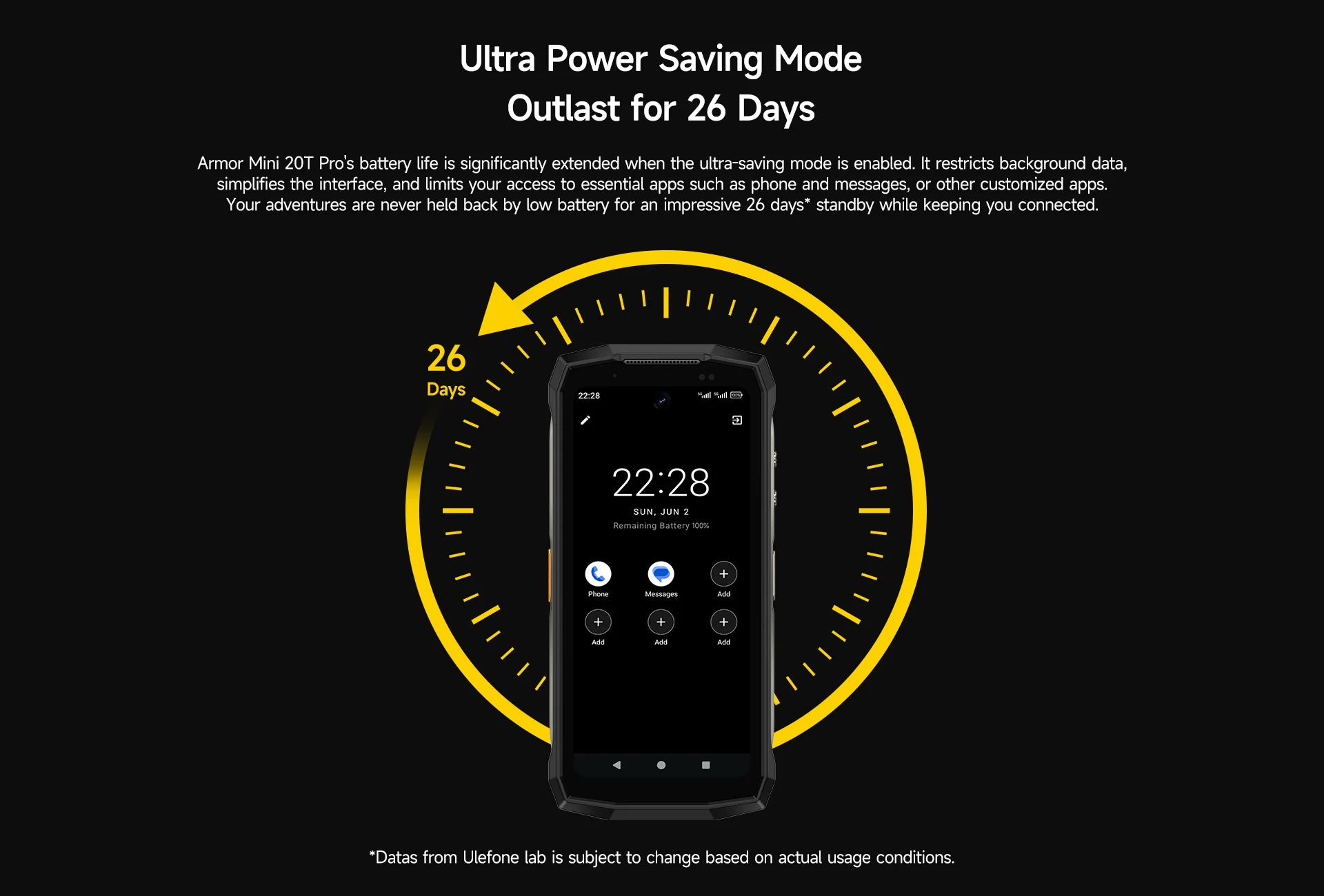 16. Datas are from Ulefone lab, the actual performance may vary.